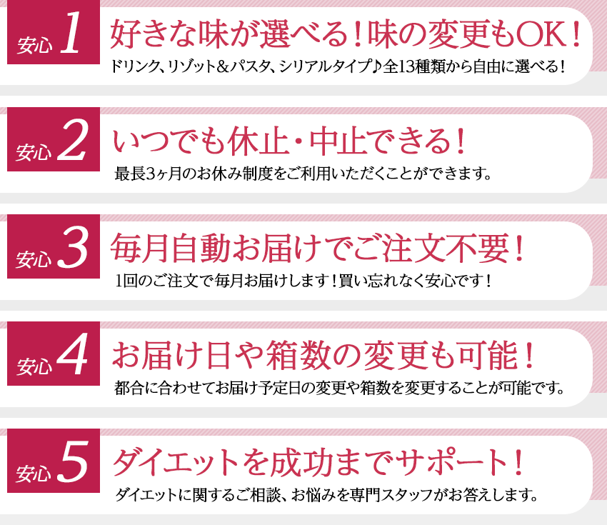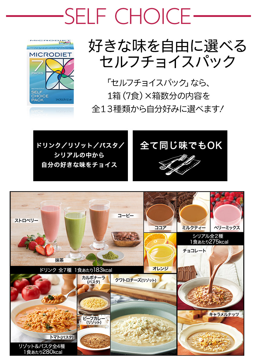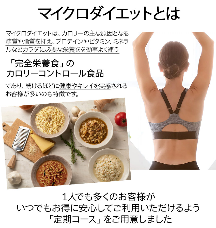 マイクロダイエットは栄養バランスや摂取量を意識することのなく、当たり前の健康維持と理想の体型づくりサポートするために作られています。 -